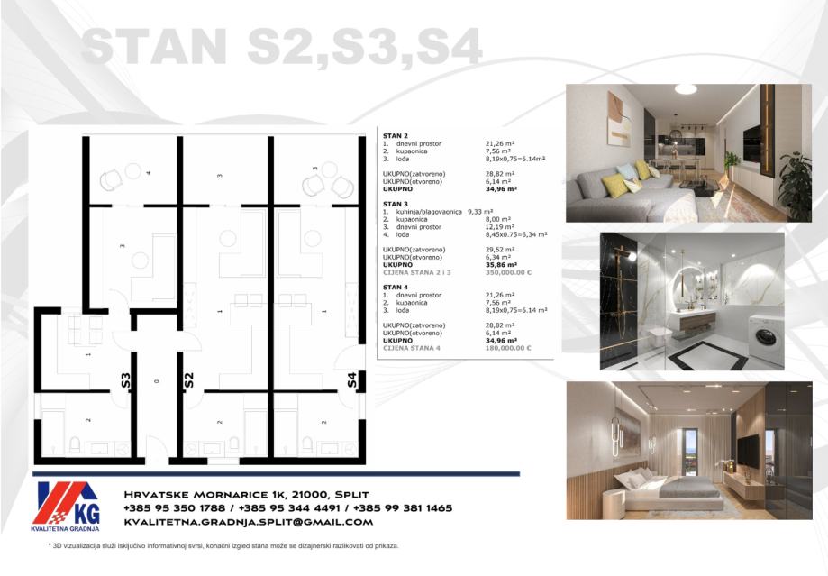 Moguća je zasebna kupnja stanova S2 i S3, uz cijenu prema dogovoru.