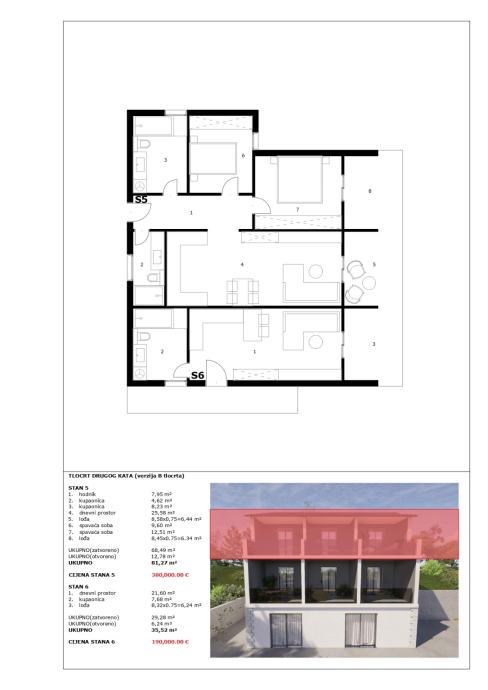 -Različite kvadrature (od 34,96 m² do 81,27 m²)