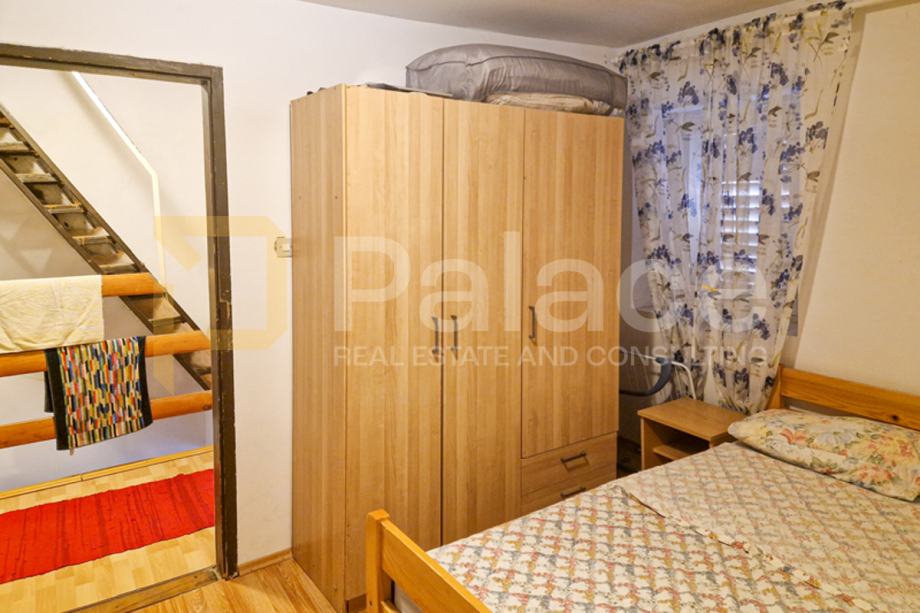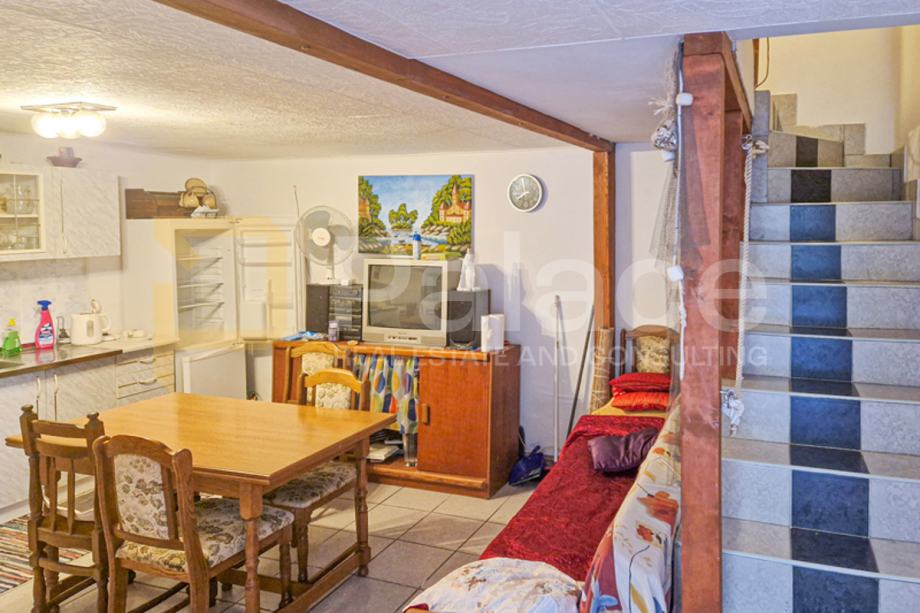 U prizemlju se nalazi kuhinja sa dnevnim boravkom, betonskim stepenicama se dolazi na kat gdje je komforna spavaća soba i kupaonica, a drvenim stepenicama se dolazi na drugi kat gdje su smještene još dvije spavaće sobe.