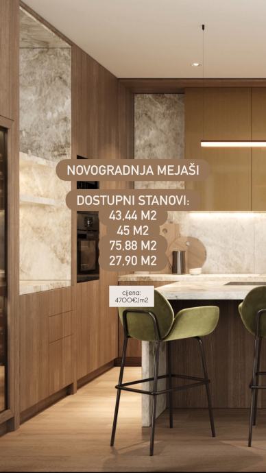 U ponudi je više stanova u kvalitetnoj novogradnji na Mejašima, odličnoj gradskoj lokaciji s brzom povezanošću prema centru Splita, izlazu iz grada i svim bitnim sadržajima (škole, trgovine, City Center One, javni prijevoz).
