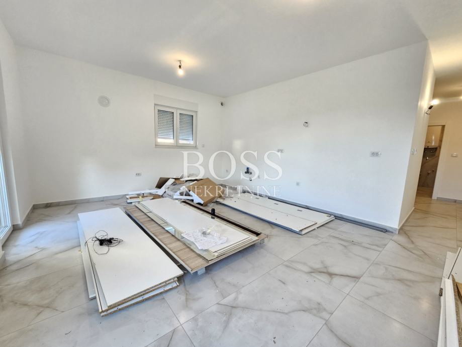 Viškovo, u ponudi imamo odličan stan od 67.41m2 u prizemlju novogradnje s vlastitom okućnicom površine 119.54m2 i tri parkirna mjesta. Stan se sastoji od kuhinje, dnevnog boravka. hodnika, kupaone, dvije sobe, ostave, natkrivenog balkona s izlazom na okućnicu. Grijanje je etažno podno na struju s dizalicom topline, u stanu je dimnjak i priprema za klima uređaj. Termo fasada, stiropor 10cm, trokomorna PVC stolarija s roletama na struju i komarnicima. Odlična i mirna lokacija, blizina svih sadržaja. Uredna vlasnička dokumentacija. Boss, kontakt: 091/379-1010 Dragan