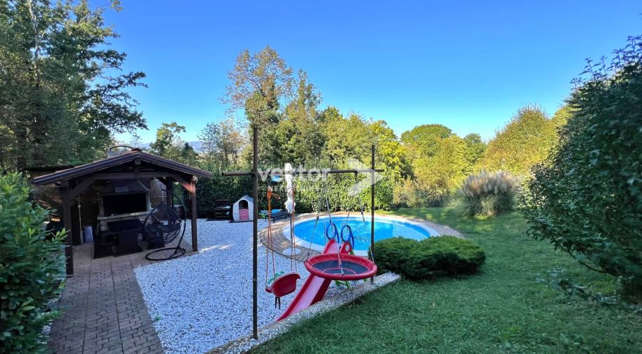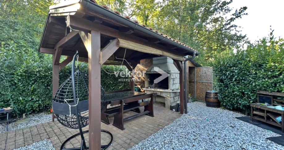 Zajednička okućnica uređena je i održavana s puno pažnje – na raspolaganju su bazen, sjenica s roštiljem, dječje igralište i lijepo uređena zelena površina.