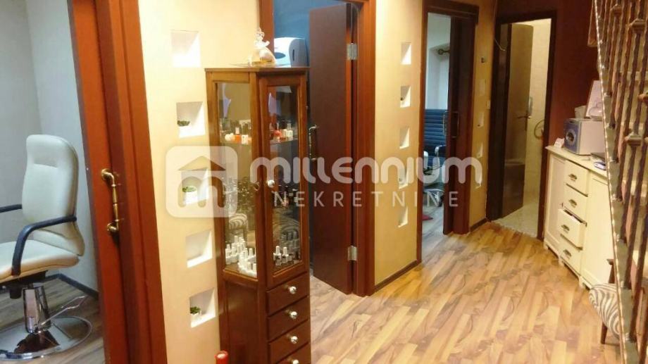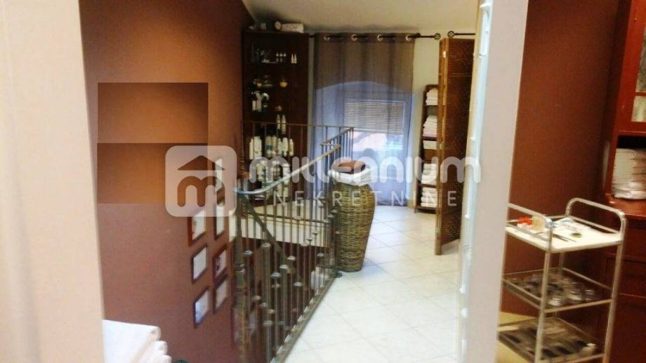 Lijepo uređen poslovni prostor u centru naselja, smješten je na frekventnoj poziciji uz glavnu prometnicu. Prostire se kroz dvije etaže, prizemlje i kat. Na donjoj etaži smještene su tri prostorije i kupaonica. Etaže su povezane unutarnjim stepeništem. Na gornjoj etaži nalaze se još dvije prostorije i kupaonica.