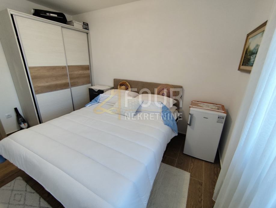Stan se nalazi na prvom katu manje zgrade i proteže se na ukupno 76,14 m2 korisne površine, uključujući dvije spavaće sobe, dnevni boravak s kuhinjom i blagovaonicom te kupaonicu. Iz stana se izlazi na natkrivenu terasu od 15,90 m2, dok dodatni prostor pruža otvor na tavanu s mnogo skladišnog mjesta.
