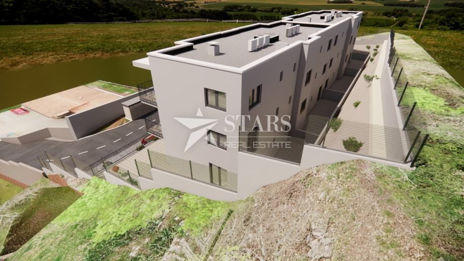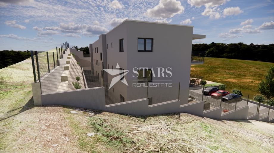 Na prodaju je stan u luksuznoj novogradnji s ukupno 12 stambenih jedinica, smještenoj u mirnoj slijepoj ulici, okruženoj zelenilom, s prekrasnim pogledom na Kastav i Učku.