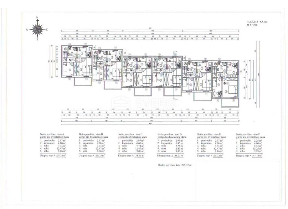 Kat površine 41,14 m2 se sastoji od tri spavaće sobe, kupaonica i predsoblje