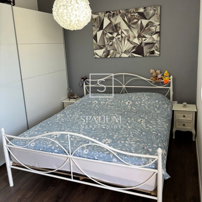Uz stan dolazi i vanjsko parkirno mjesto površine 12,50 m², a stanari zgrade imaju na korištenje lijepo uređenu zajedničku okućnicu s dvorištem i bazenom. Nekretnina predstavlja odličan izbor za ugodan obiteljski život, ali i atraktivnu investiciju za turistički najam.