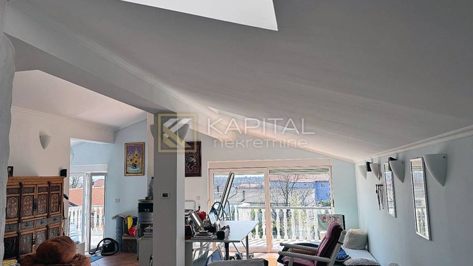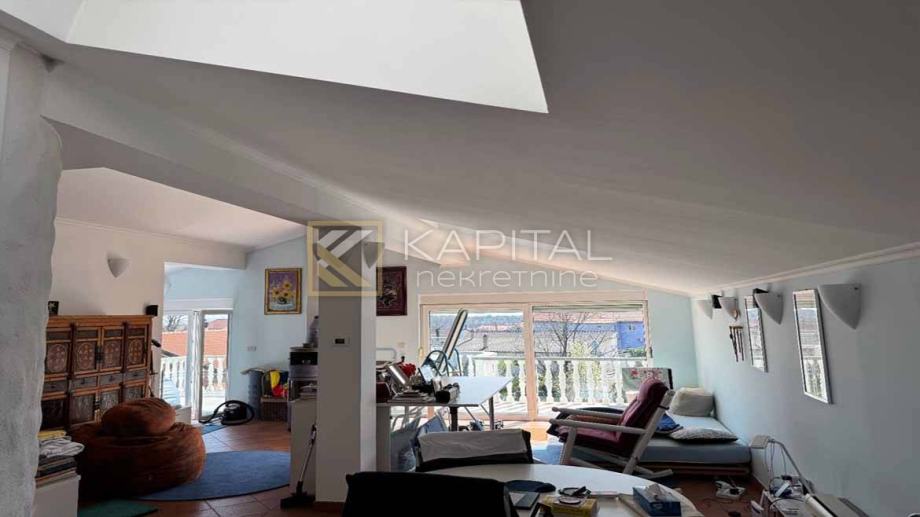 Etaža kuće izgrađena 2009.godine po najsuvremenijim izolacijskim standardima. Ukupna površina 110 m2 sa 16 m2 terase i pogledom na Učku. Po koncepciji 2s+db s mogućnošću dobivanja 3s+db. Podno grijanje, sauna, duple sanitarije, drvarnica, ostava, parkirno mjesto. Klimatska naprava sa dvije jedinice, alarmi sustav i daljinsko upravljanje grijanja i bojlera. Mogućnost kupnje garaže od 44m2. Za sve informacije nazovite 099/2196-353