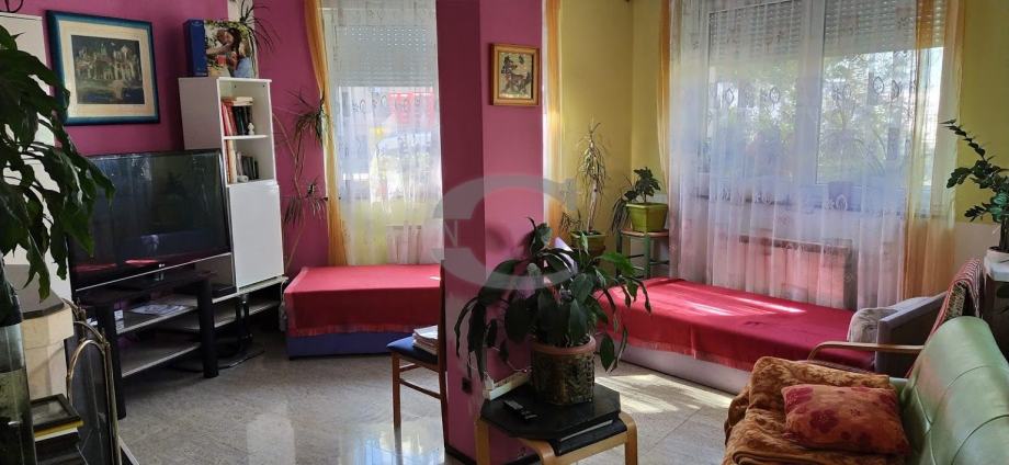 KOMFORAN DNEVNI BORAVAK SA KAMINOM, BLAGAVAONICA, KUHINJA, SPAVAĆA SOBA I KUPAONICA. LIJEPA I UREDNA TERASA NA KOJU SE IZLAZI IZ BLAGAVAONICE TE VRT I VOĆKE!