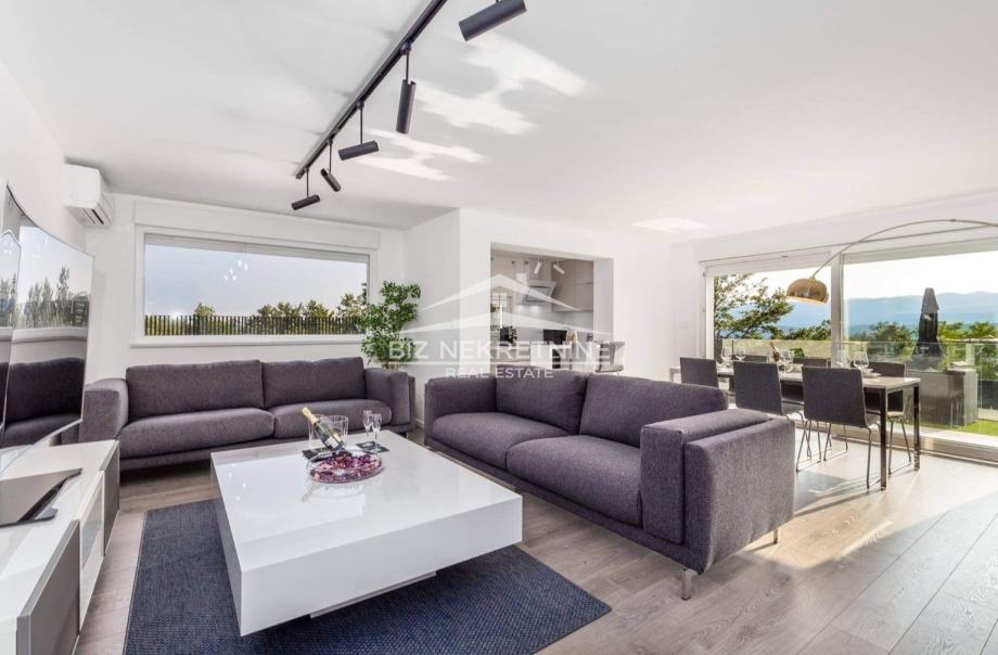 Idealna nekretnina za obitelj, par koji želi boraviti u mirnom, prirodnom okruženju, a u isto vrijeme biti udaljen samo par minuta autom od Opatije ili Rijeke. Iznos mjesečne najamnine je 1.100,00 eura plus režije.