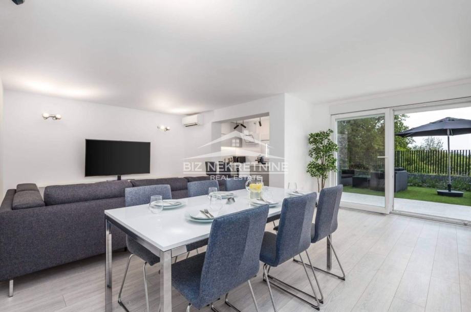 Sa strane zgrade su osigurana parkirna mjesta. Stan se sastoji od open space dnevnog djela u kojem se nalaze prostorni dnevni boravak, blagovaonica i kuhinja. Stan je potpuno opremljen, uređen s ukusom i elegancijom. Iz dnevnog djela izlazi se na balkon s kojeg se pruža lijepi pogled. Nekretnina je puna sunca i svjetlosti, kuća je dobro izolirana, stolarija je nova, a grijanje je na klimu.