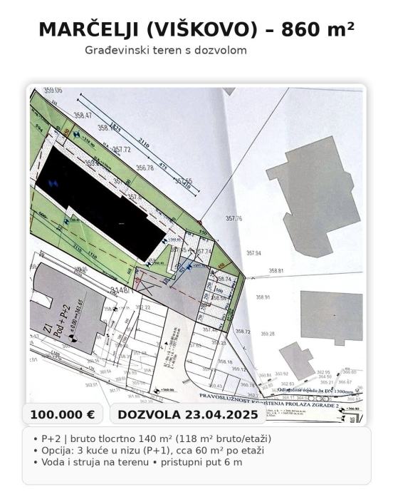VIŠKOVO, MARČELJI- Zemljište 860 m2 s izdanom građevinskom dozvolom!