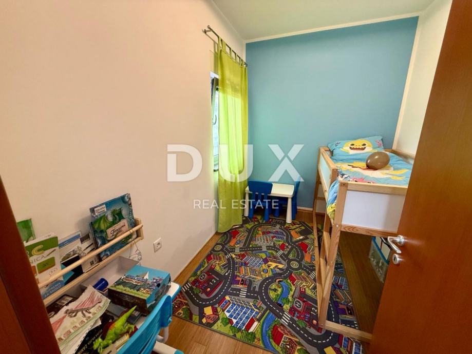 Uz stan dolaze i dva parkirna mjesta, ograđena okućnica površine 130 m² te konoba od 55 m² s dovedenom strujom i vodom, idealna za dodatne sadržaje poput radione, spremišta ili prostora za druženje.