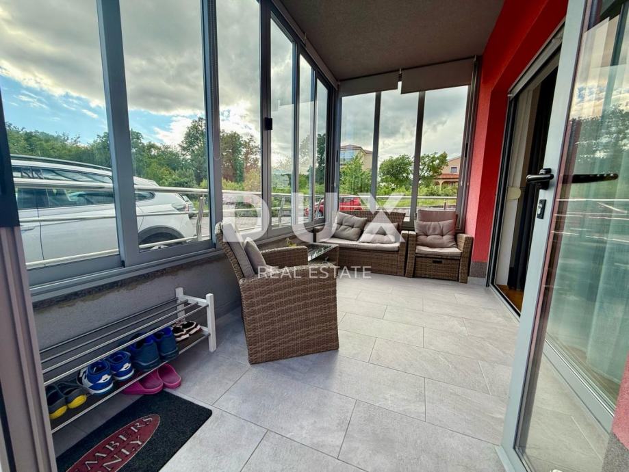 U ponudi agencije DUX nalazi se uredan stan u prizemlju manje, novije zgrade. Odlikuje ga odlična orijentacija te obilje prirodne svjetlosti i topline tijekom cijelog dana.