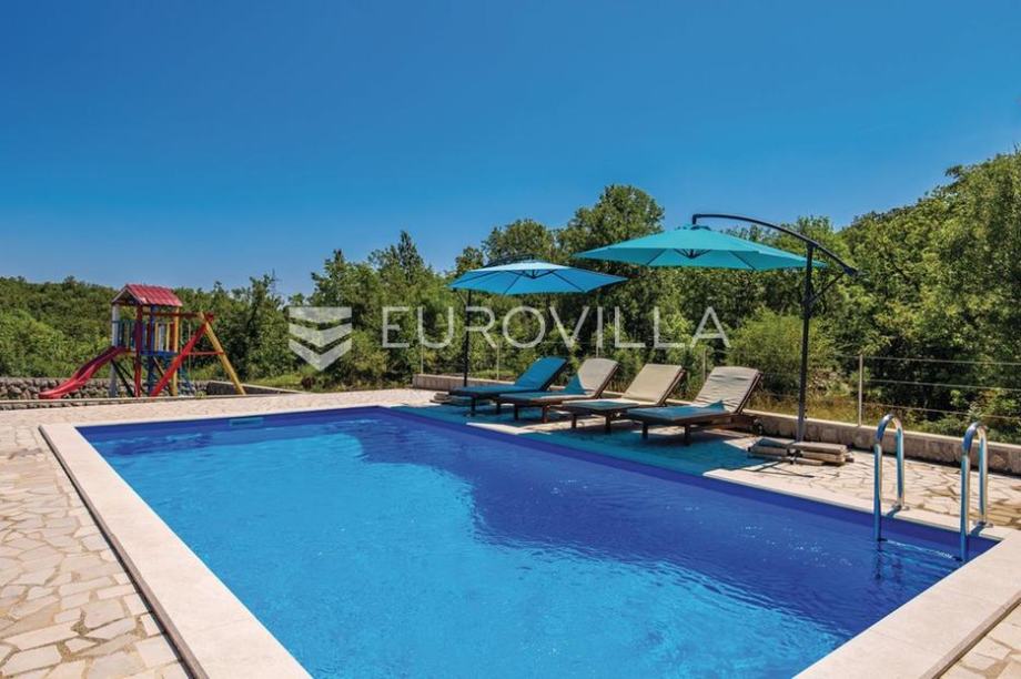 U mirnom dijelu nalazi se samostojeća kuća površine 170 m², smještena na okućnici od 675 m², okružena zelenim pojasom i privatnošću.Kuća se sastoji od tri stana, pružajući fleksibilne mogućnosti stanovanja ili najma.Prizemlje (južna strana), dvosoban stan s dnevnim boravkom, kuhinjom, kupaonicom i prostranom spavaćom sobom. Ispred stana nalazi se natkrivena terasa i vrt ograđen čempresima.Prizemlje (sjeverna strana), manji jednosobni stan u roh-bau fazi, idealan za dovršetak prema vlastitim željama.Gornja etaža, komforan trosoban stan s vanjskim stepenicama, hodnikom, dvije spavaće sobe, kupaonicom, WC-om, ostavom, kuhinjom, blagovaonicom i dnevnim boravkom s izlazom na prostrani balkon s prekrasnim pogledom na zelenilo.Kuća je opremljena plinskim grijanjem, PVC stolarijom i kvalitetnim podnim oblogama, što osigurava ugodan i udoban život tijekom cijele godine.Okućnica je pravo malo mini-raj za obitelj i rekreaciju, bazen od 32 m² sa sunčalištem, sjenica s roštiljem, dječje igralište i tri parkirna mjesta.Smještena je na kraju slijepe ulice, okružena šumom, pružajući mir, tišinu i privatnost, a opet svega nekoliko minuta vožnje od svih važnih sadržaja.Nekretnina se trenutno iznajmljuje pet mjeseci godišnje kao kuća za odmor, što je čini i izvrsnom investicijom.Ova kuća je idealna prilika za investitore ili za one koji traže mirno okruženje za život u kontaktu s prirodom.Za dodatne informacije i razgledavanje, slobodno nas kontaktirajte....