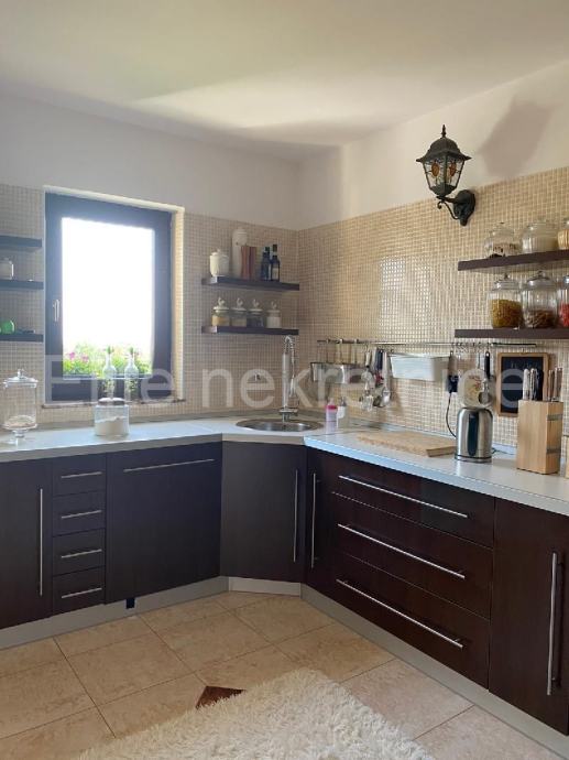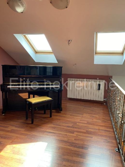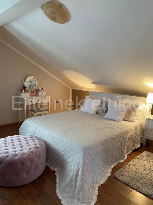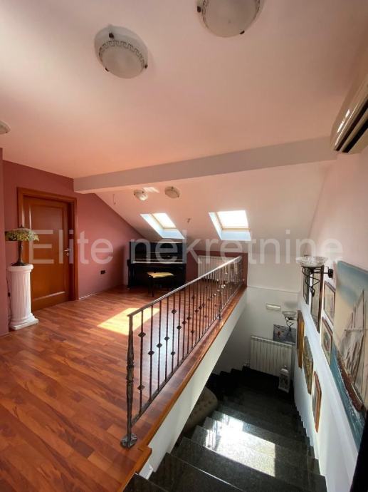 Na 240m2 smještena je kuhinja sa blagovaonom, dnevni boravak, 3 sobe, 2 kupaone (u jednoj jaccuzzi), prostorija za peglaonu te walk-in ormar (poseban prostor samo za garderobu).