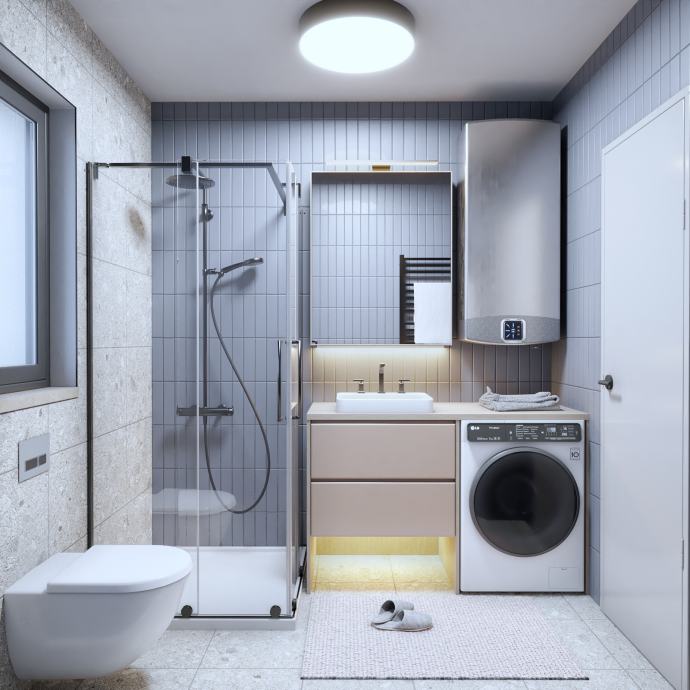 Visoki standardi gradnje: Dierre -Protuprovalna ulazna vrata, REHAU PVC stolarija, dizalica topline i hlađenja, ugrađeni Geberit.