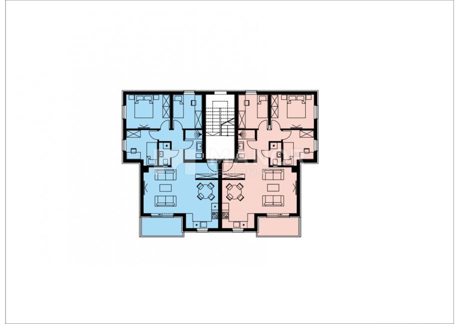 Svaka od stambenih jedinica koncipirana je kao 3S+DB, ukupne površine 80 m2,
