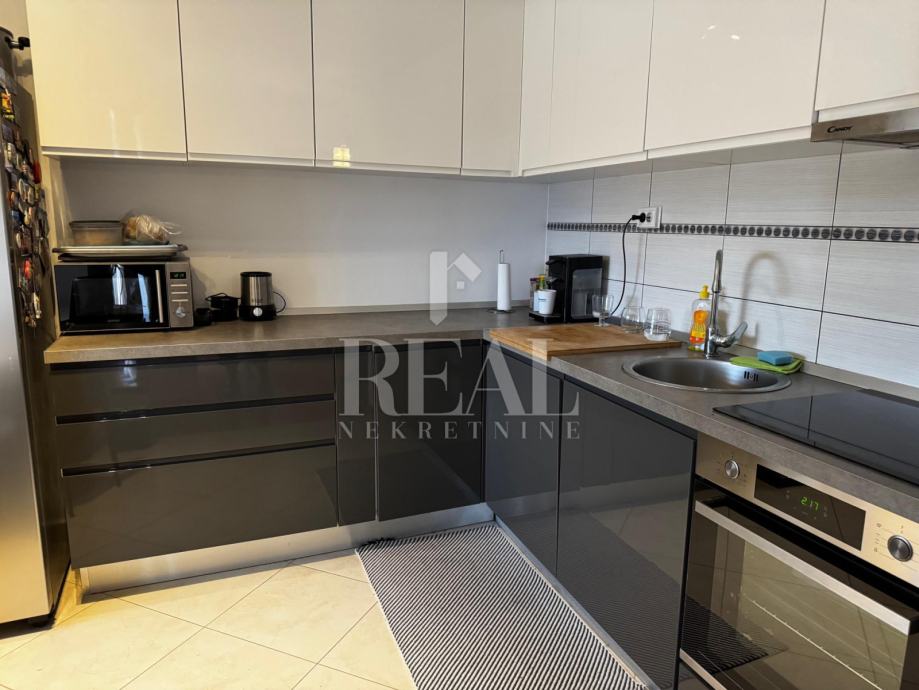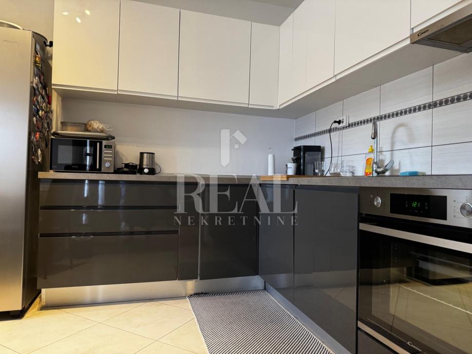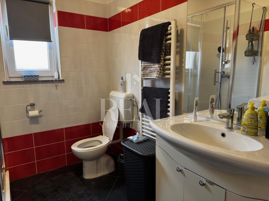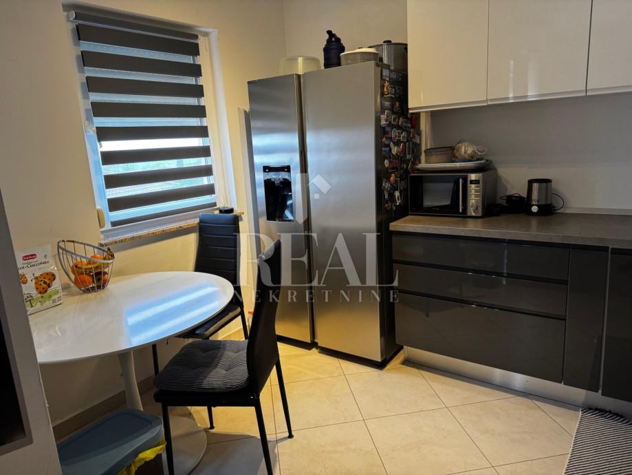 U ponudu smo dobili odličnu nekretninu koja se zaista može nazvati obiteljski stan. Smješten u manjoj stambenoj zgradi sa 6 stanova, proteže se na dvije etaže i ukupne je kvadrature od 111,42 m2. Sastoji se od hodnika, dvije spavaće sobe, kupaone, kuhinje s blagovaonom i dnevnog boravka te velike loggie s pogledom na more. Na drugoj etaži je lijepa spavaća soba i kupaona te spremište. U suterenu zgrade je i velika drvarnica, a na ograđenoj okućnici pod kapijom s daljinskim upravljanjem su i dva parkirna mjesta u vlasništvu. Na zajedničkoj okućnici je roštilj. Izuzetno mirna slijepa ulica koja je na par minuta hoda do centra Viškova i svih bitnih sadržaja za život. Sama nekretnina je kvalitetno građena i uređena. Kuhinja stara dvije godine ostaje u cijeni, a ostali namještaj je stvar dogovora. Nekretnina za svaku preporuku!! Uredna vlasnička dokumentacija!