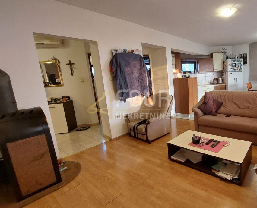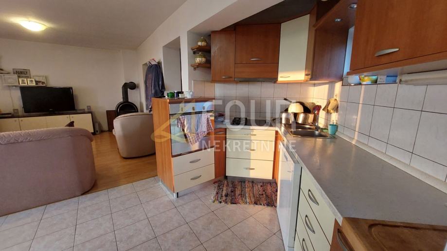 U prizemlju se nalazi stan od 101.24m2, a sastoji se od kuhinje s blagovaonicom i komfornog dnevnog boravka, 3 spavaće sobe, dvije kupaonice, ostave i hodnika.
