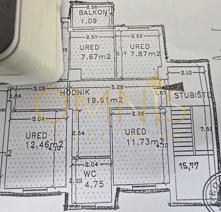 - Prostorije: 4 sobe, hodnik, kupaonica + 2 WC-a, balkon
