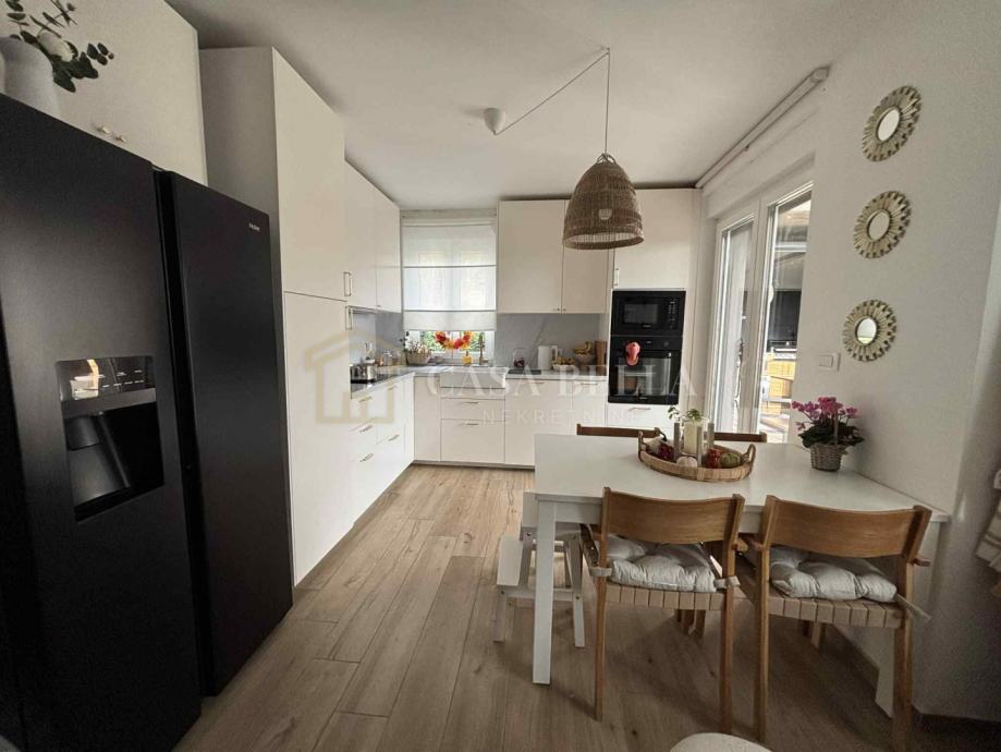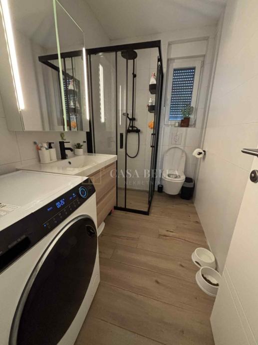 Stan je moderno uređen i potpuno opremljen. Grijanje je podno putem Vaillant bojlera, ugodnu atmosferu pruža Dimplex kamin, a sve rolete su na struju. Zgrada je sigurna i održavana, opremljena kamerama ispred i unutar objekta.
