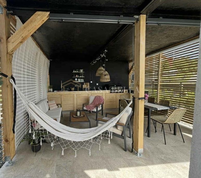 Iz dnevnog dijela izlazi se na prostranu terasu i okućnicu površine 142 m², na kojoj se nalazi ljetna kuhinja i prostor za uživanje na otvorenom, savršen za opuštanje i druženje. Na okućnici se nalazi i vrtna kućica površine 9 m².