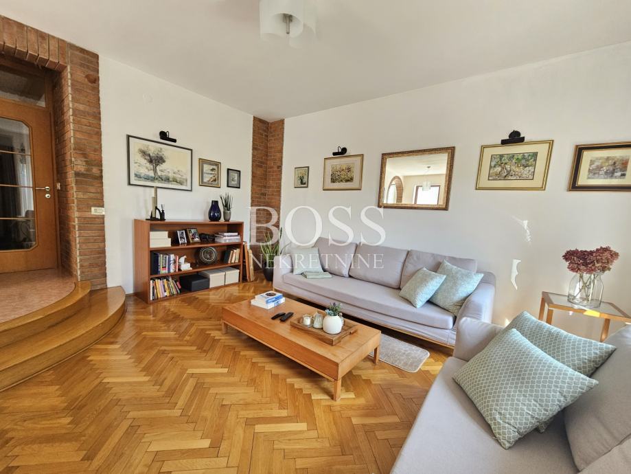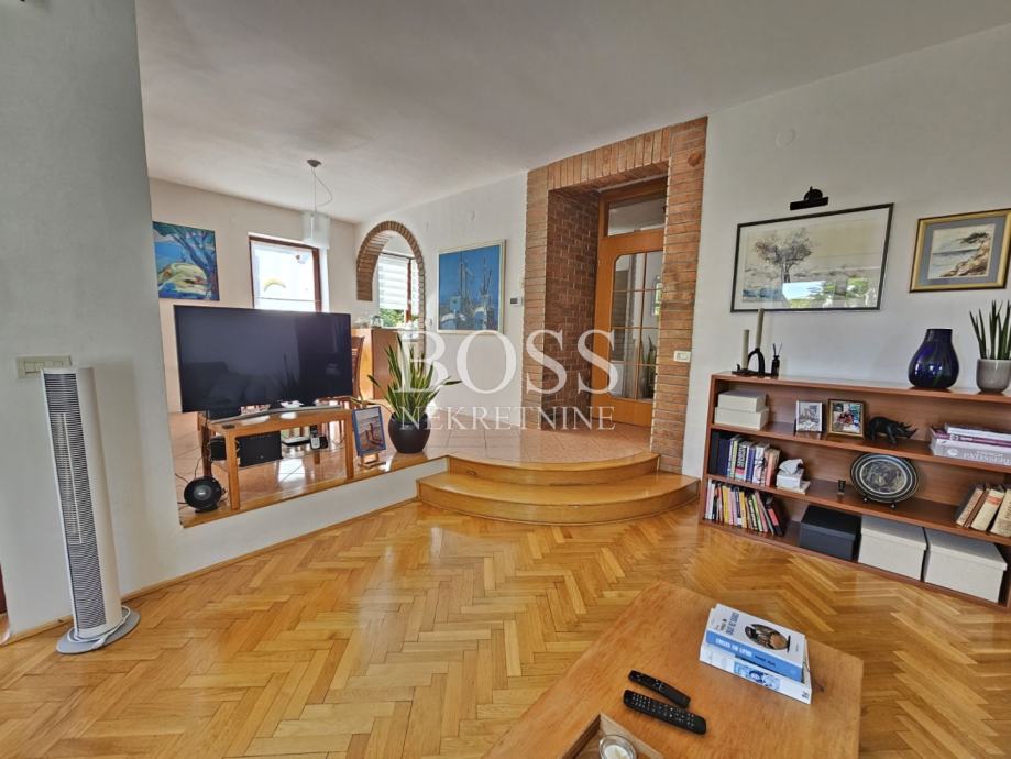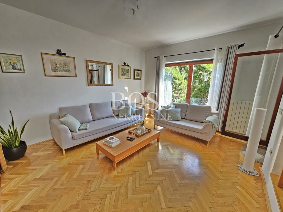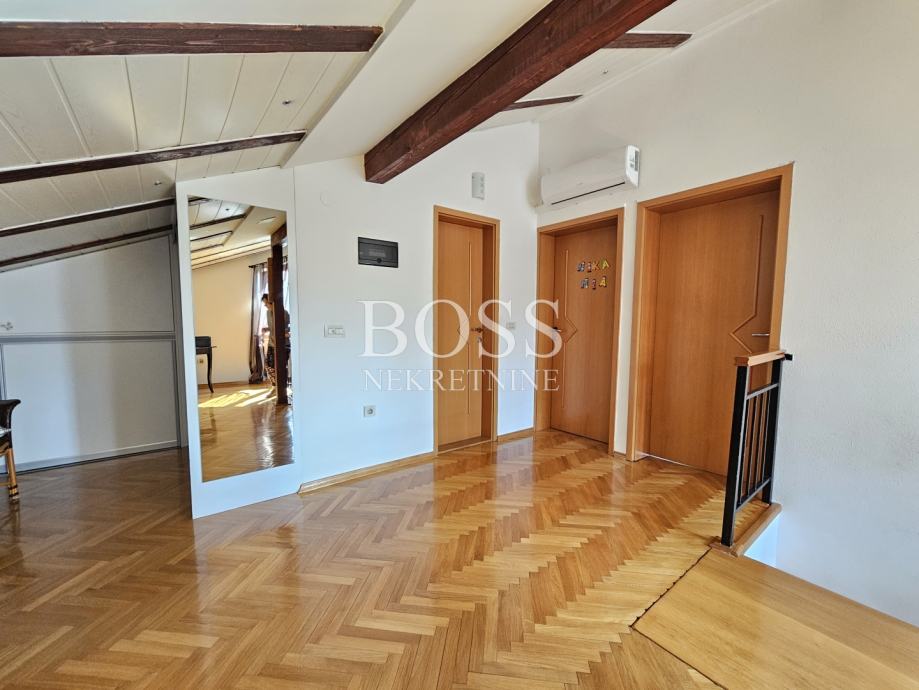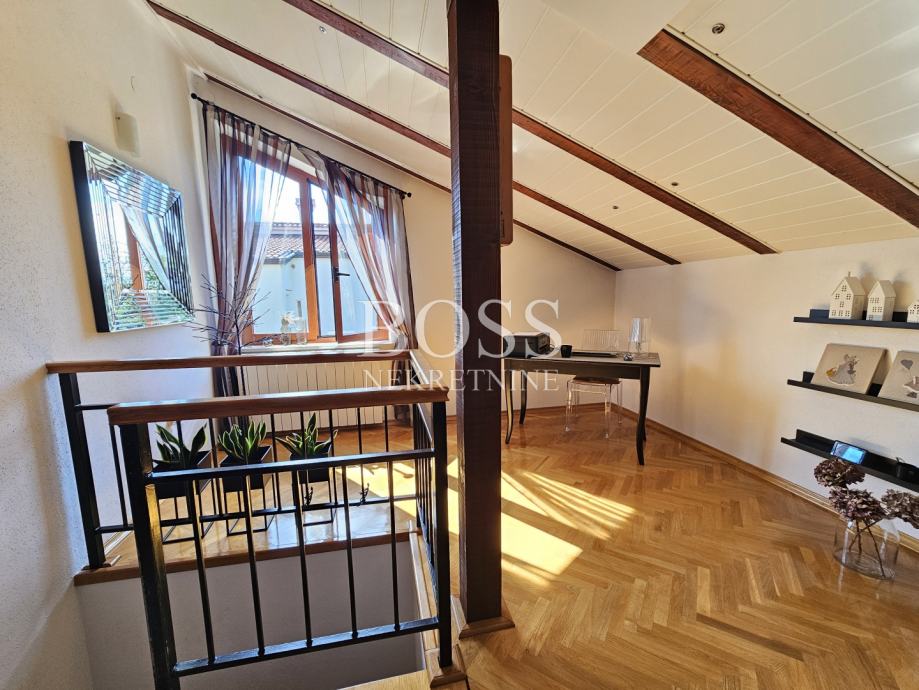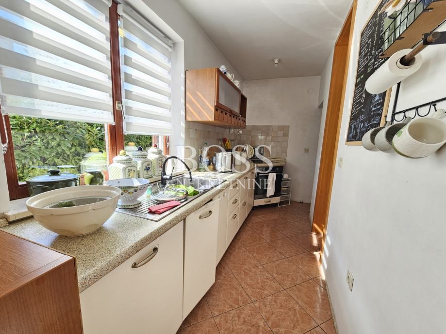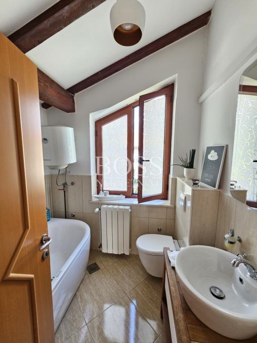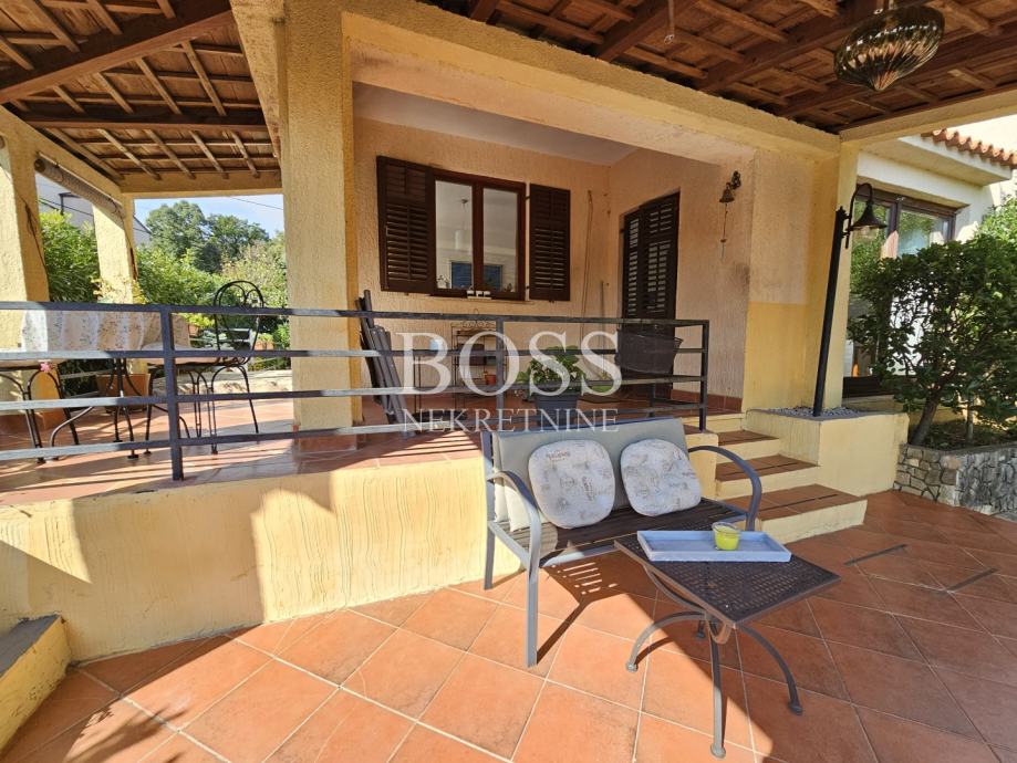 Viškovo, u ponudi imamo odličnu samostojeću obiteljsku kuću. Sastoji se od dvoetažnog stana, kotlovnice, garaže i okućnice. U prizemlju je natkrivena terasa, lođa, hodnik, kuhinja s blagovanom, dnevni boravak, spavaća soba, kupaona, ostava i kotlovnica. Na prvom katu, tj. visokom potkrovlju su jedna manja soba, jedna veća soba s balkonom, kupaona, velika prostorija open space tipa s ugradbenim ormarima. Kuća ima lijepu i uređenu okućnicu na kojoj je smještena velika garaža od 34m2. Etažno grijanje na lož ulje i klima uređaj. Lijepa pozicija, blizina svih usluga. Uredna vlasnička dokumentacija. Boss, kontakt: 091/379-1010 Dragan