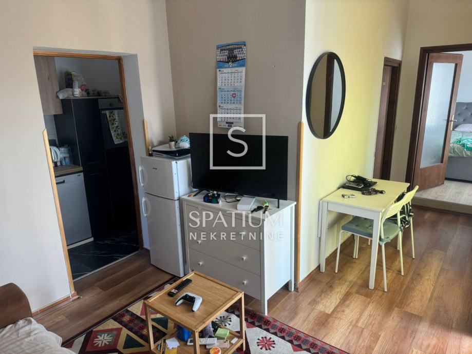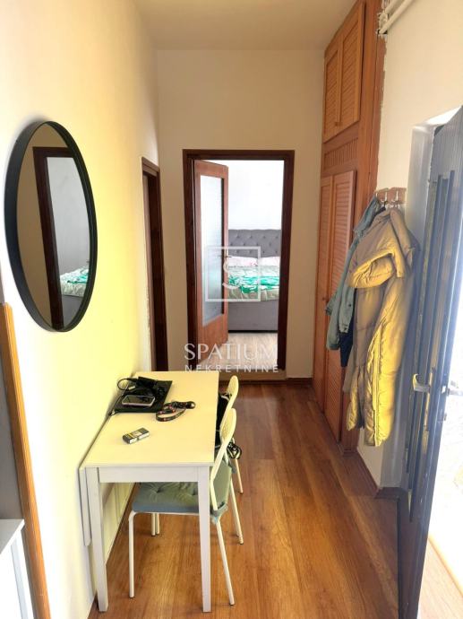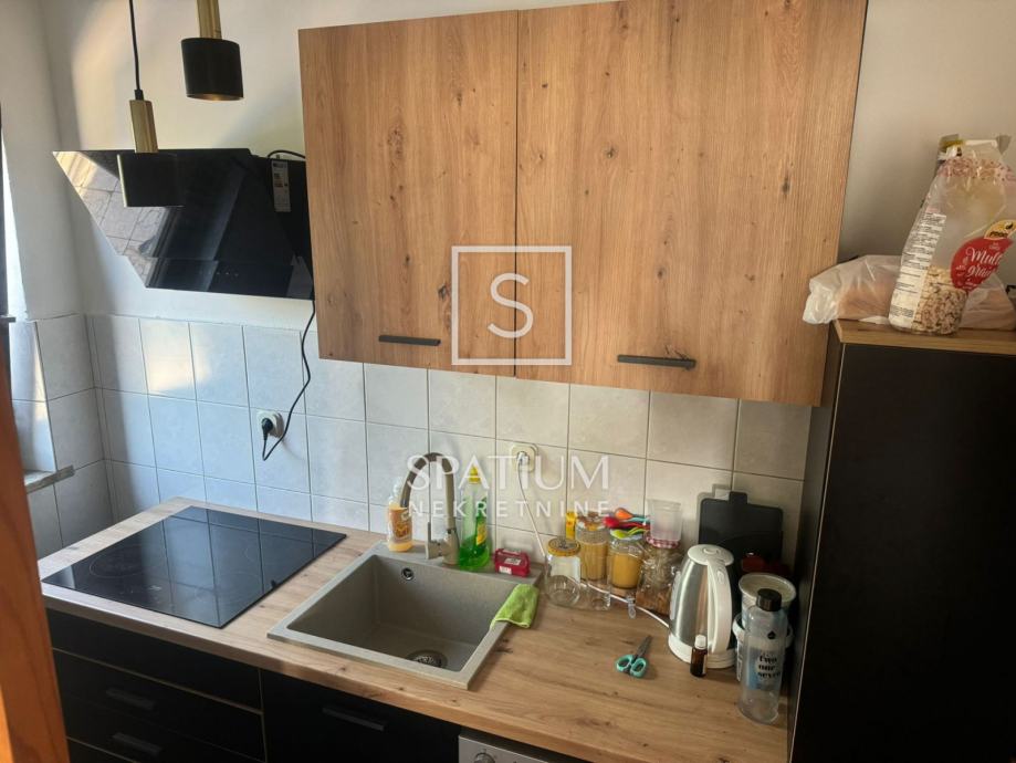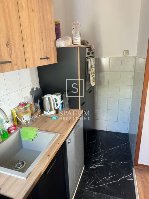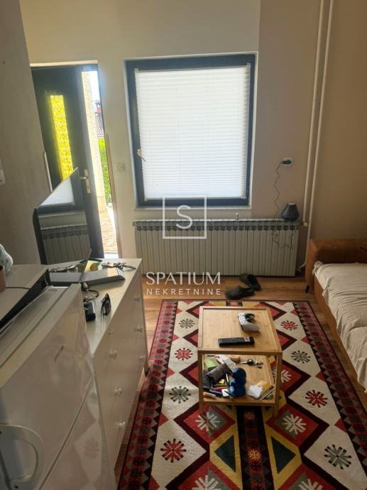 U prizemlju se nalazi spremište i jednosobni stan površine 40m2 koji se sastoji od spavaće sobe, kuhinje s dnevnim boravkom te kupaonicom.