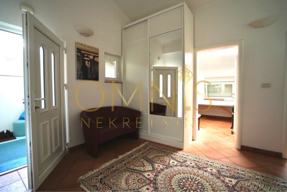 U prodaji je moderan i tehnološki opremljen trosobni stan površine 109 m2, smješten na drugom katu kuće u mirnom dijelu Viškova (Saršoni). Stan je uređen po najnovijim standardima i pruža visoku razinu udobnosti i funkcionalnosti.