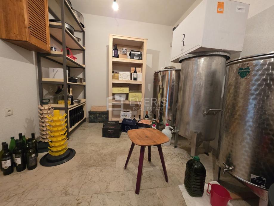 Nekretnina ima dvije garaže površine cca 50 m2, ispod garaža nalazi se konoba s vanjskim WC-om od također cca 50 m2.