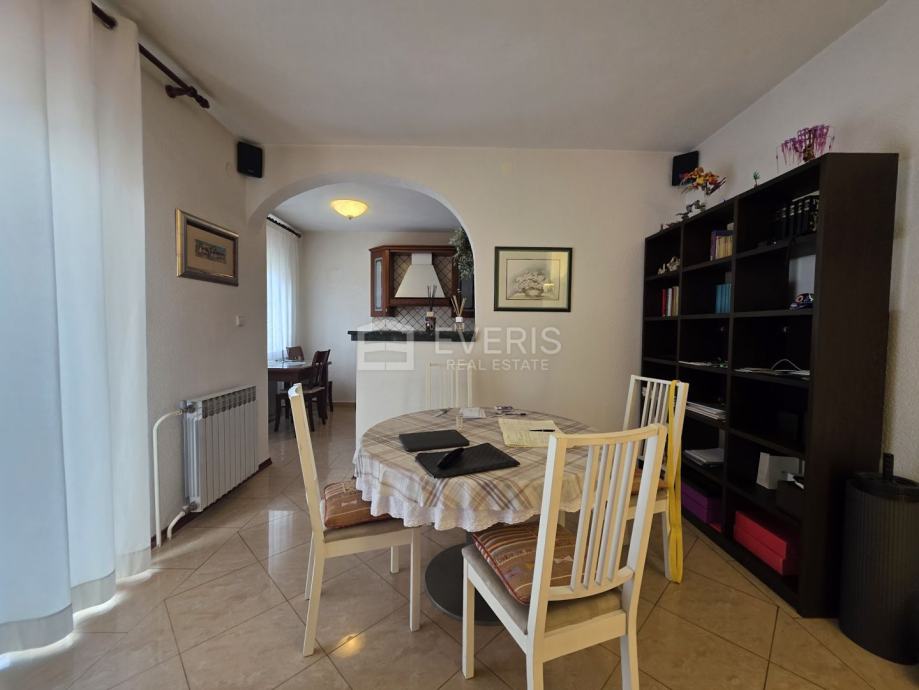 ▪ Prvi kat površine cca 90 m2: dvosoban stan s dnevnim boravkom, toaletom, kupaonom, balkonom, hodnikom te kuhinjom i blagovaonom.