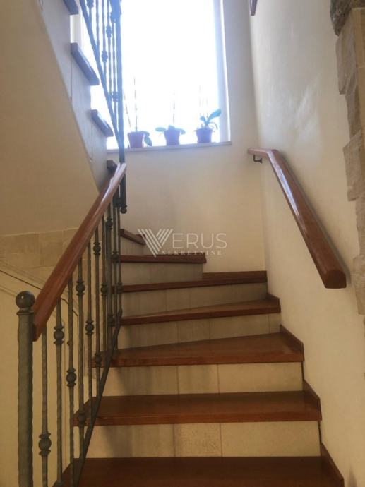 Kuća se sastoji od prizemlja, gdje se nalaze radna soba i spavaća soba, prostrani dnevni boravak odvojen od kuhinje i blagovaonice velikom voltom od bračkog kamena, kupaonice i vešeraja.