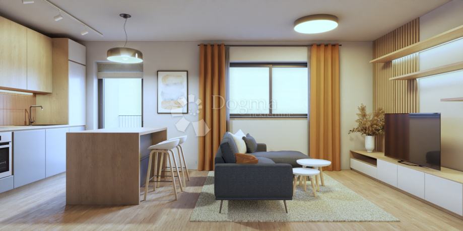 Unašoj ponudi stan 2S + DB (desni) 1 kat — sastoji se od dnevnog boravka s kuhinjom, dvije spavaće sobe, kupaonice, balkona i lođe. Stanu pripada jedno parkirno mjesto.