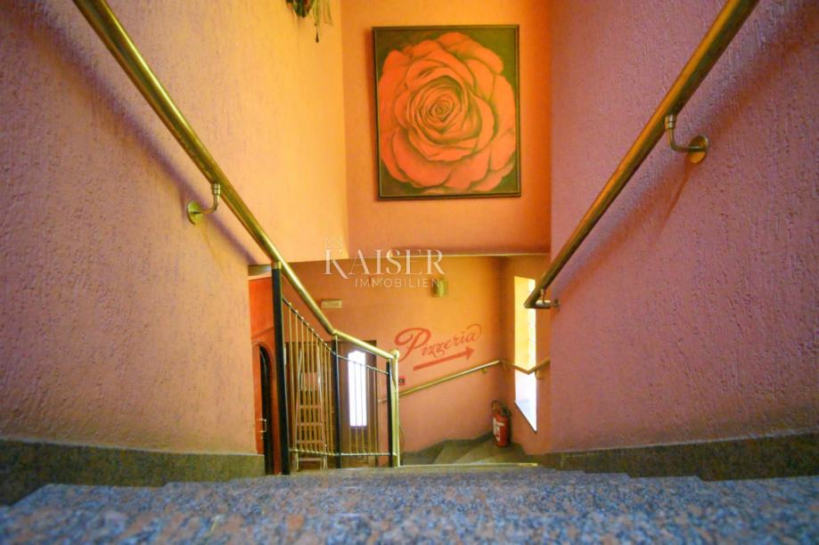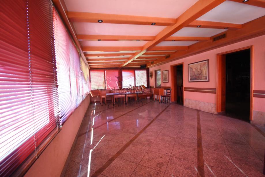 Na katu je 263 m2 koji se sastoje od zatvorene terase, sale sa šankom i pomoćnom kuhinjicom. Osim toga na katu se nalaze i kancelarija, garderoba, wc, kuhinja i pomoćna kuhinja. Gornji kat je uređen za otvaranje restorana, pizzerie ili bilo koje druge ugostiteljske djelatnosti. Poslovni prostor ima tri odvojena ulaza i nalazi na odlčnoj lokaciji.U blizini je parking.
