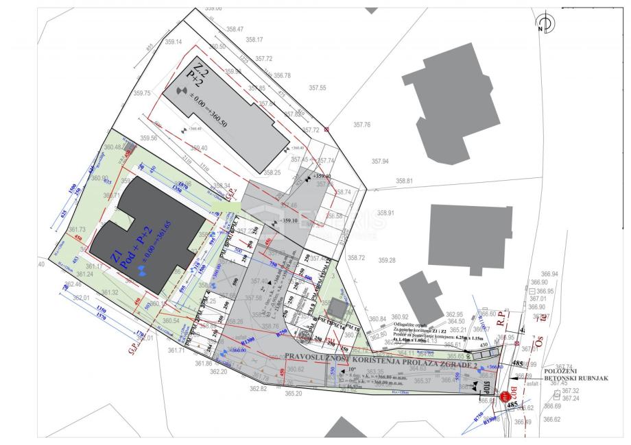 Građevinsko zemljište ukupne površine 2,268 m2 s dvije građevinske dozvole za dvije zgrade: 1. zgrada: 6 stanova / 2. zgrada 3 stana - ukupno 9 stanova.