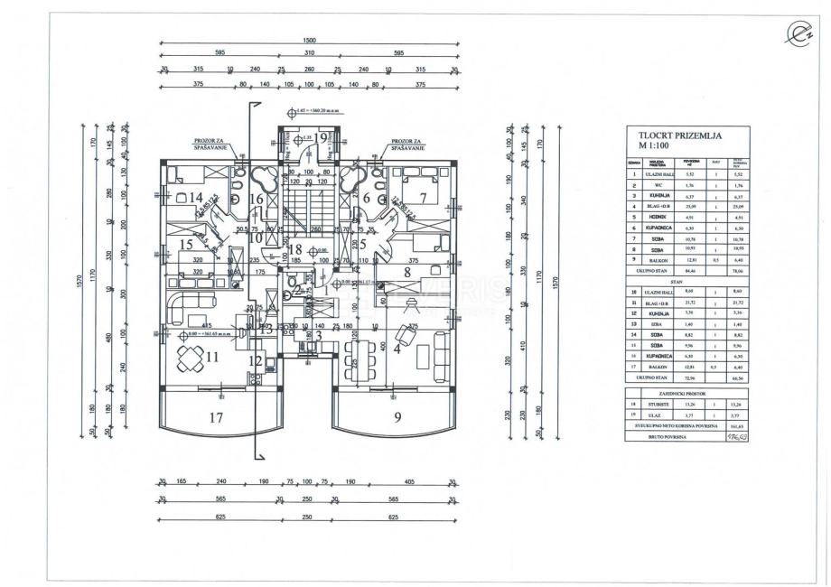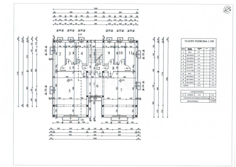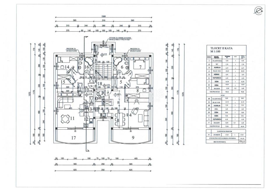 1. zgrada bi se sastojala od četiri etaže: podrum GBP 101 m2, prizemlje GBP 176,69m2, prvi kat GBP 176,69 m2 te drugi kat GBP 176,69 m2, ukupne GBP svih etaža: 631,57 m2.