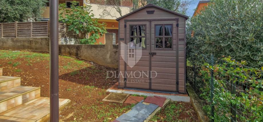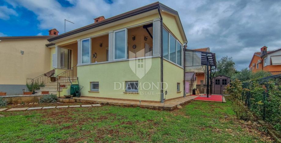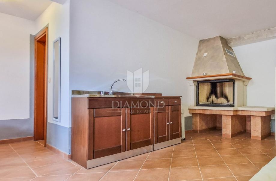 Prodaje se atraktivna dvojna kuća, visoka prizemnica u okolici Poreča sa pogledom na more. Kuća se sastoji od 2 spavaće sobe, 2 kupaonice i prostranog dnevnog boravka. Grijanje je osigurano klimom i centralnim grijanjem na drva. U suterenu se nalazi dodatna stambena jedinica - garsonjera s kuhinjom i kaminom, idealna za goste ili najam.