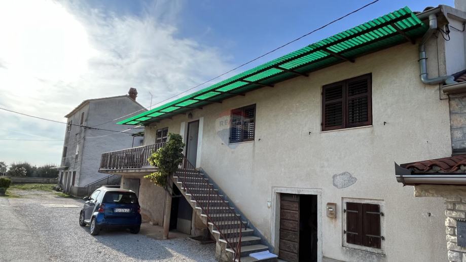 U malom mjestu u okolici Višnjana prodaje se dvojna kuća sa 700 m2 okućnice. U prizemlju se nalaze dvije garaže i konoba. Vanjskim stepeništem se dolazi do stana na prvom katu. Stan se sastoji od ulaznog hodnika, kupaonice, dnevne sobe iz koje se ulazi u kuhinju. Kuhinja ima izlaz na terasu. Stan ima dvije spavaće sobe. Sa stražnje strane nekretnine nalazi se ograđena okućnica ukupne površine 690 m2.