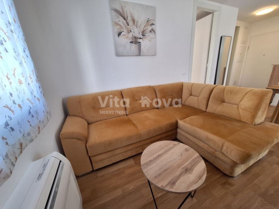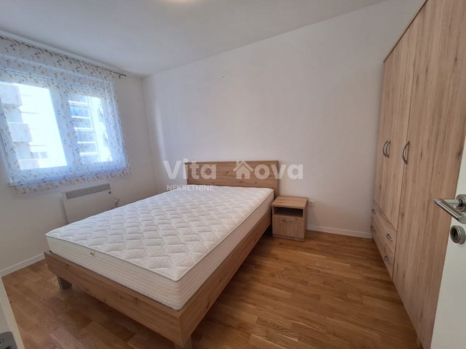 Iznajmljuje se na dulji period novo uređeni stan na Višnjiku, idealno za 2 osobe. Stan se sastoji od kuhinje, blagovaonice, dnevnog boravka, kupaonice, spavaće sobe i prostrane terase. Stan je kompletno namješten, u novoj zgradi. Stanu pripada i jedno garažno parkirno mjesto, uključeno u cijenu.