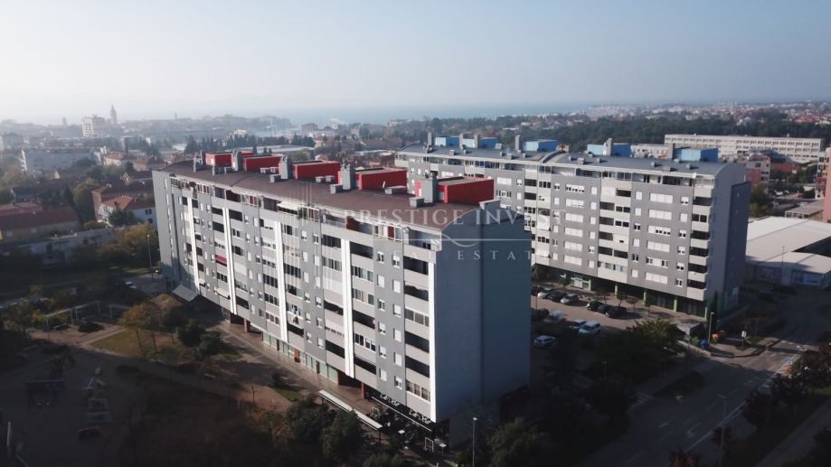 Stan se nalazi u višestambenoj zgradi, s poslovnim prostorima u prizemlju, podzemnom garažom s garažnim mjestima i vanjskim parkirnim mjestima.