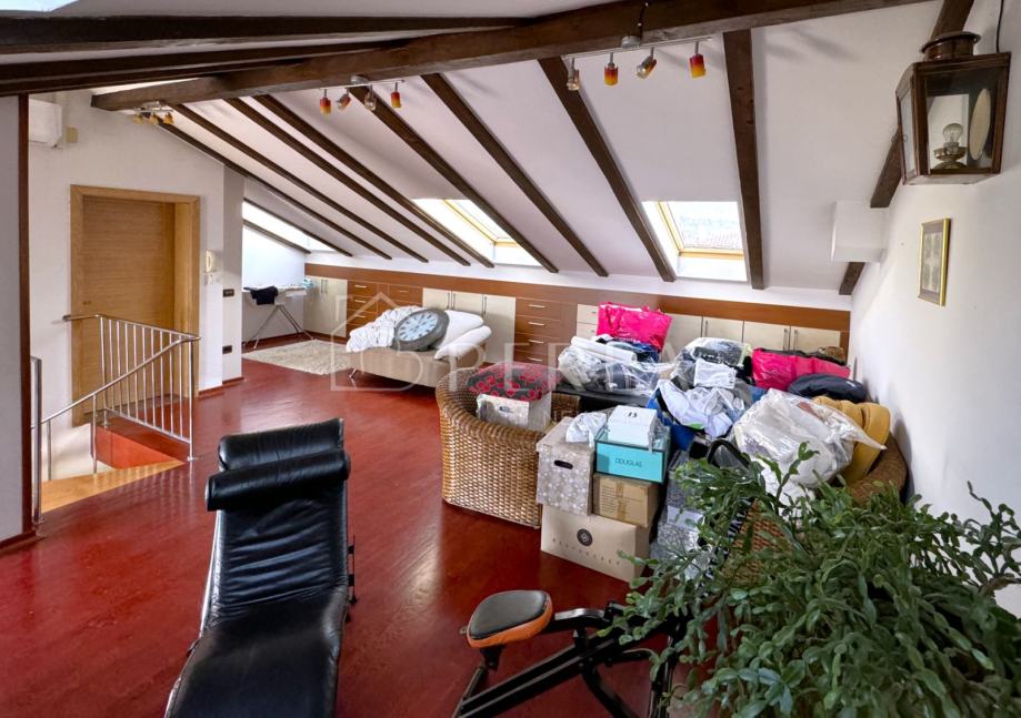 Spiralnim stepenicama koje se nalaze odmah s desna ulaznog prostora dolazi se na drugu etažu koju čini veliki open space prostor i dvije spavaće sobe, a u kojem je moguće pregraditi još jednu veću ili dvije manje sobe.