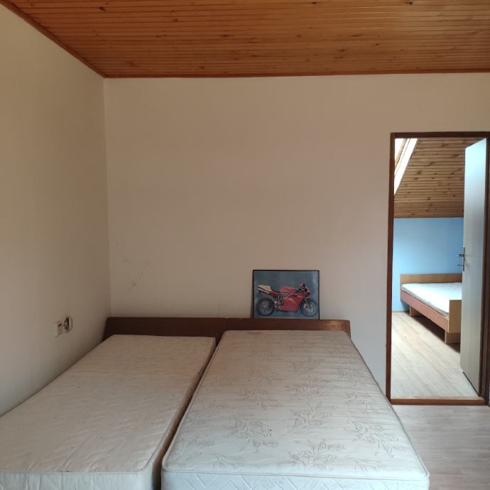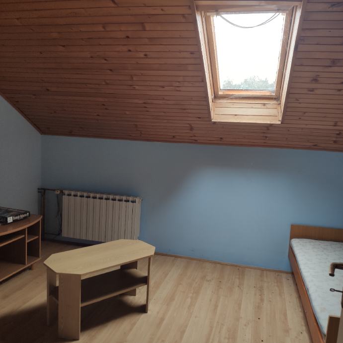 Visoka prizemnica u Daruvaru, u Mlinskoj ulici, u blizini Daruvarskih toplica sa plinskim centralnim grijanjem sprovedenim u sve prostorije.. U 230 m2 smjestilo se 7 spavacih soba, dnevni boravak, kuhinja, staklom zatvorena teresa, ogromna garaza od 28 m2, dvije kupaone (od kojih je jedna nezavrsena). Donja etaza je kompletno namjestena, dok je gornja etaza namjestena djelimicno. U kuci komotno mogu zivjeti tri obitelji. Zemljiste je 1.900 cetvornih metara. Papiri 1/1 i Bez tereta. Prodaja direktno od vlasnika. Molim zvati na 095 9030 848 gospodin Zlatko