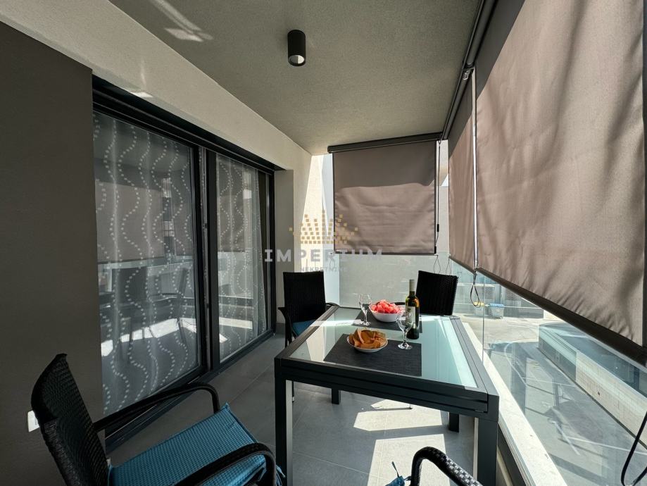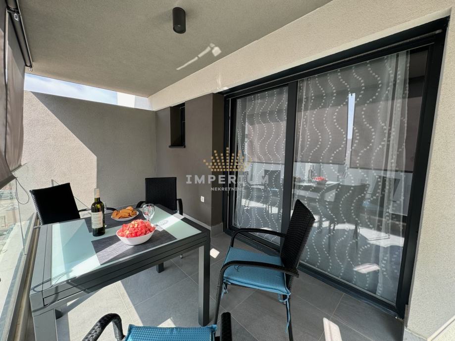 Stan se nalazi na 2. katu stambene zgrade, ima 56 m2, a sastoji se od tri spavaće sobe (svaka soba ima tv i klimu), ulaznog prostora, kuhinje s blagovaonom, dnevnog boravka, hodnika, kupaonice i balkona. Stanu pripada jedno parkirno mjesto ispred zgrade.