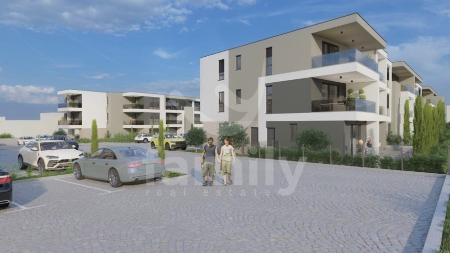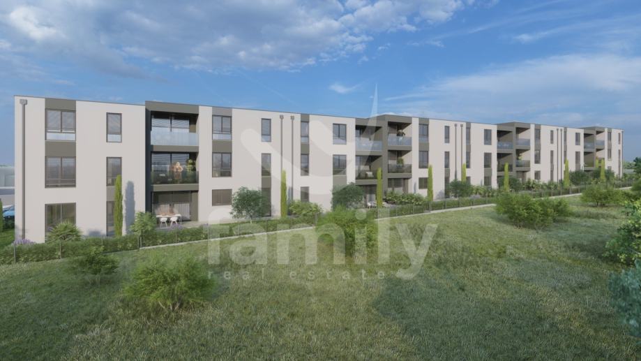Upravo u Puli planirana je ova izuzetno visokokvalitetna novogradnja provjerenog investitora sa sveukupno četiri obiteljska stana. Ovaj obiteljski stan bit će smješten na prvome katu novogradnje i površine je 59,70 m2 sa dva parkirna mjesta i spremištem u prizemlju zgrade. Stan će se sastoji od izuzetno prostranog i osvijetljenog dnevnog boravka sa kuhinjom i blagovaonicom u kojem će biti postavljena klizna staklena stijena sa električnim roletama kroz koju će se pristupati na lođu, dvije spavaće sobe i kupaonice. Po cijelome stanu planirana je visokokvalitetna keramika, dok je za spavaće sobe u planu laminat, a zgrada će biti ekonomična obzirom da će biti postavljena termofasada debljine 10 cm. Sustav grijanja i hlađenja bit će reguliran putem tri jedinice klima uređaja marke Samsung WindFree, u svakoj prostoriji po jedna. U stanu će biti postavljena PVC stolarija dvoslojnog stakla i boje antracita sa roletama. Visokokvalitetna novosagrađena zgrada nalazit će se na odličnoj lokaciji blizu svih popratnih sadržaja od trgovine, pošte, banke, vrtića, šetnice, parkova, šumice i samog centra grada Pule. U tijeku je proces ishodovanja građevinske dozvole, a obzirom na provjerenog i pouzdanog investitora useljenje se očekuje krajem ljeta 2026. godine.