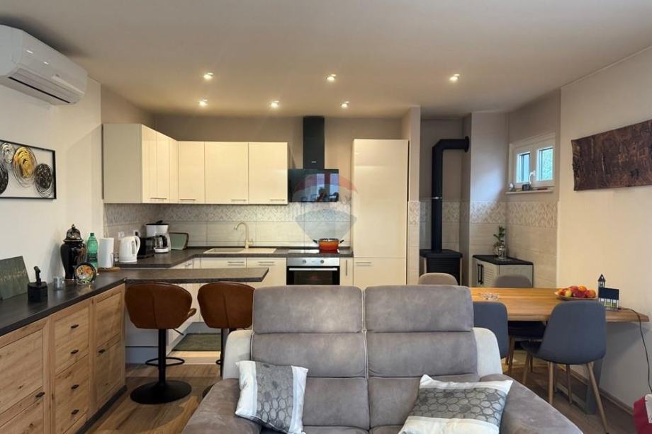 Vanjski prostor također je u potpunosti uređen: nova popločenja, kompletno nova ograda sa zaštitom od buke te električna ulazna vrata osiguravaju visoku razinu udobnosti, sigurnosti i privatnosti.
