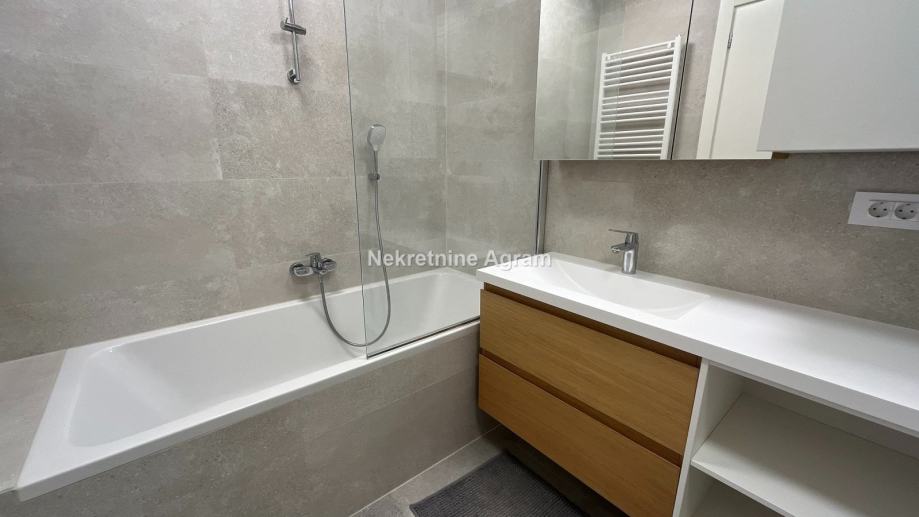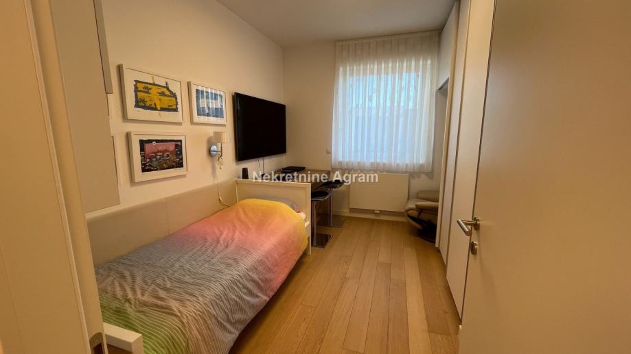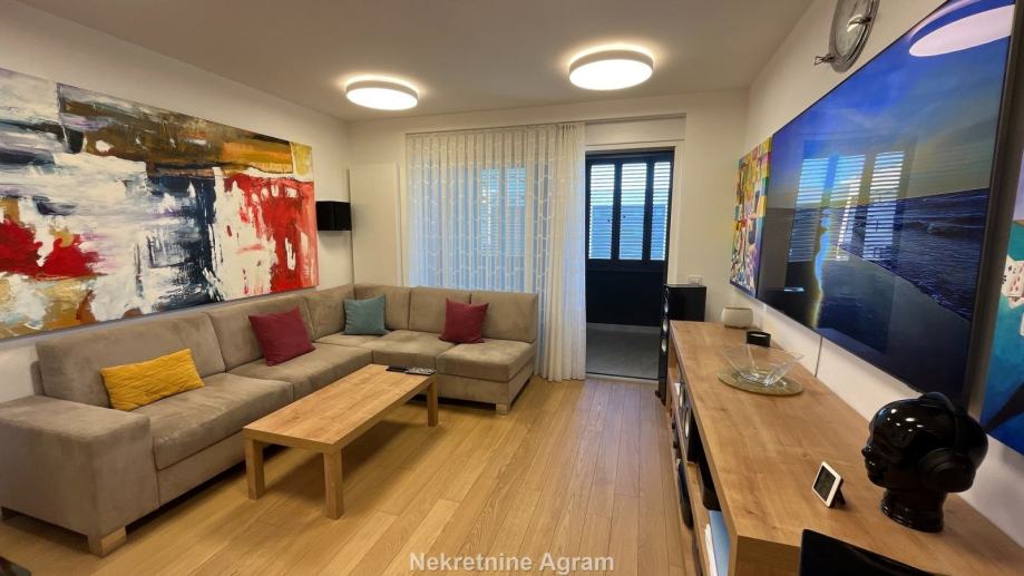 Stan ima podno grijanje u kupaonicama i hodniku – sve upravljano SMART HOME sustavom, hrastov parket u sobama i dnevnom boravku, protuprovalna vrata, Daikin klima uređaji u svim prostorijama internet-optika, te UTP Cat. VII – Ethernet 20 GB & HI-FI/AV (4800 m dodatnih kabela). Zbog potreba SMART HOME sustava – rekonstruirana kompletna elektro instalacija te dodana Home Theater instalacija u dnevnom boravku.Ekstra kvalitetna opremljenost i materijali u stanu i zgradi.