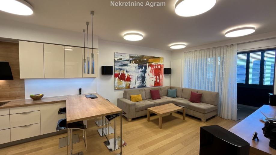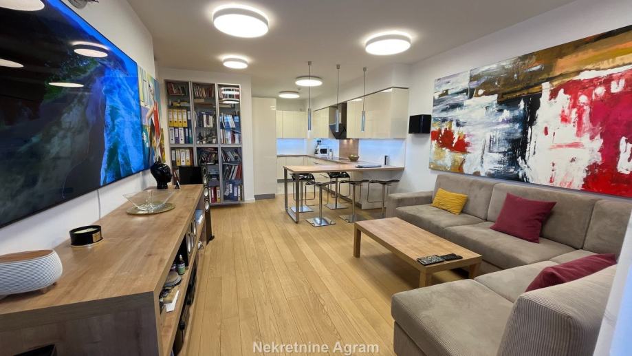 Prekrasan, izuzetno luksuzan i dizajnerski namješten (sav namještaj i oprema u cijeni stana) 3s stan, jugo-istočne orijentacije, nkp 108.55 m2 , koji se sastoji: