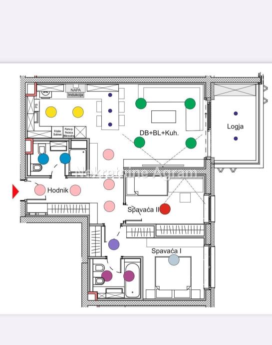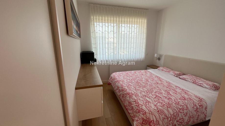 stan (76,53 m2) - ulazni hodnik, open space dnevni boravak s kuhinjom i blagovaonicom i izlazom na prekrasnu i zaštićenu loggiu (8,43 m2), dvije spavaće sobe, dvije kupaonice – (tuš kada i walk-in tuš).