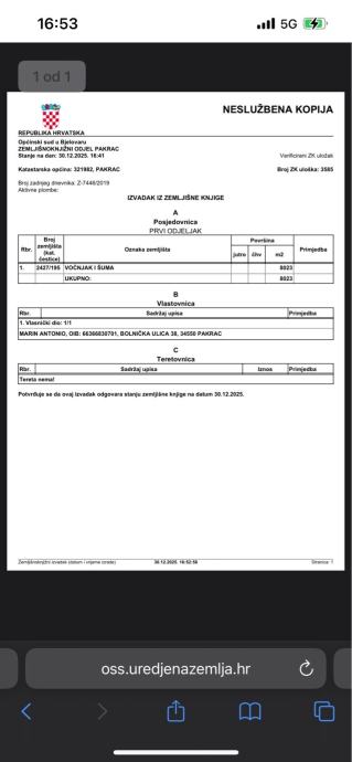 Prodajem nasad krušaka star 8 godina. Nasad ima oko 1000 stabala krušaka. Sve ograđeno, uređeno, ima nasipan pristupni put do zemljišta. Iza voćnjaka nalazi se oko 2500m2 šume, uglavnom bagrema od drvne mase.